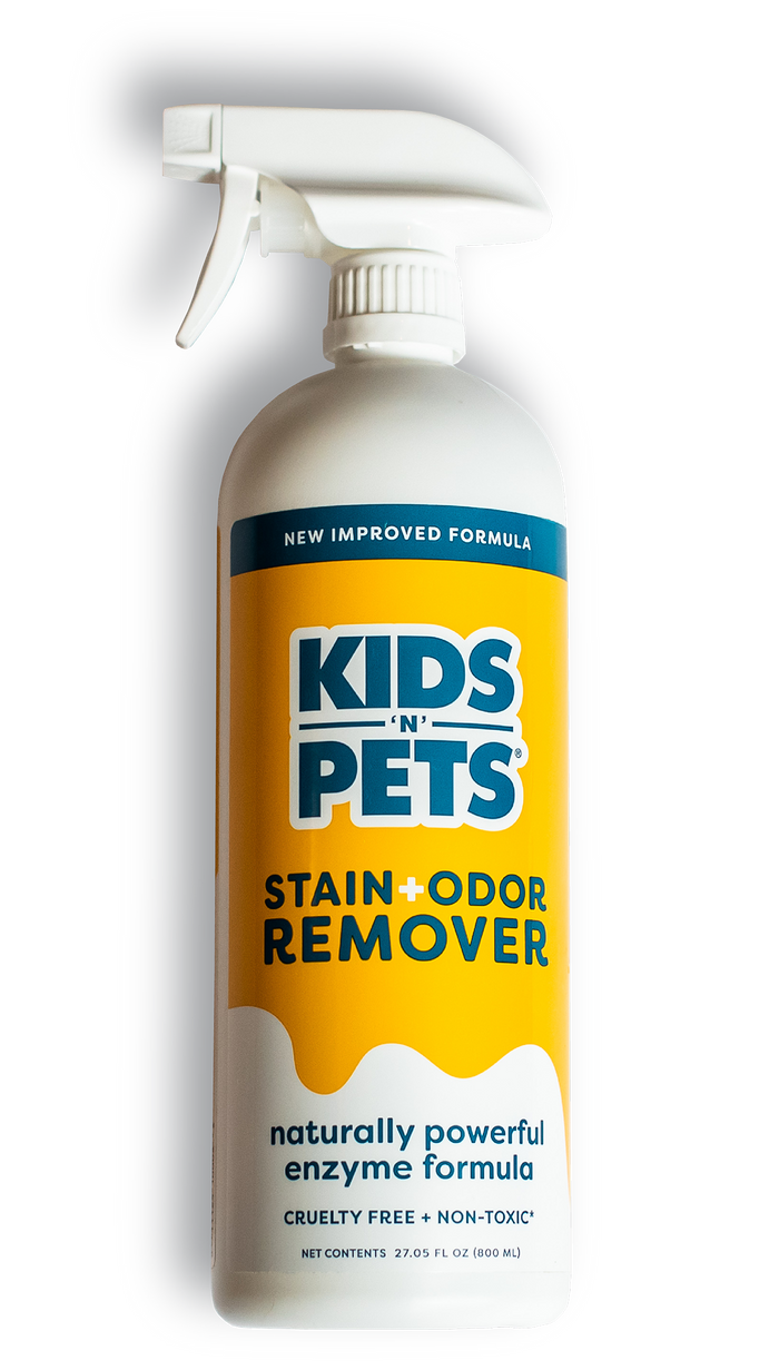 STAIN + ODOR REMOVERKIDS ‘N’ PETS naturally powerful enzyme-based formula completely gets rid of smells, spots, and messes.